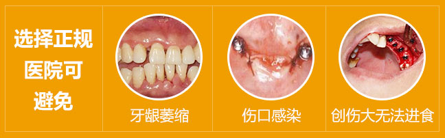 种植牙是一项先进的手术,对种植医生的技术水平要求很高。如果操作不当,较易引起手术器械感染引发慢性炎症,导致牙龈萎缩和牙龈炎等并发症。