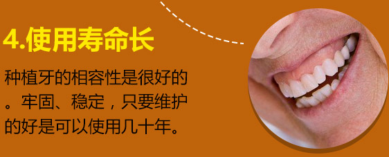 种植牙相比传统的修复方式,无论是咀嚼力度还是美观性,种植牙都可以媲美真牙。而且选择好的植体、好的医生,加上后期维护良好,种植牙可以使用几十年。