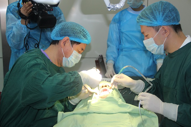 康贝佳口腔韩国种植牙医生崔容硕院长亲自操刀演绎多颗种牙技术,整台手术在达到口腔医院评审标准的手术室内顺利进行,耗时不足10分钟,手术患者黄先生的两颗牙齿就种植完成了,在场观众都为崔容硕院长的技艺娴熟程度感到惊叹。